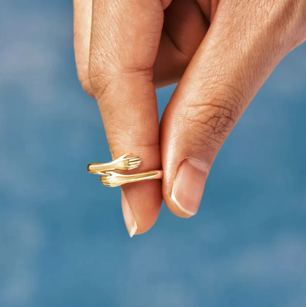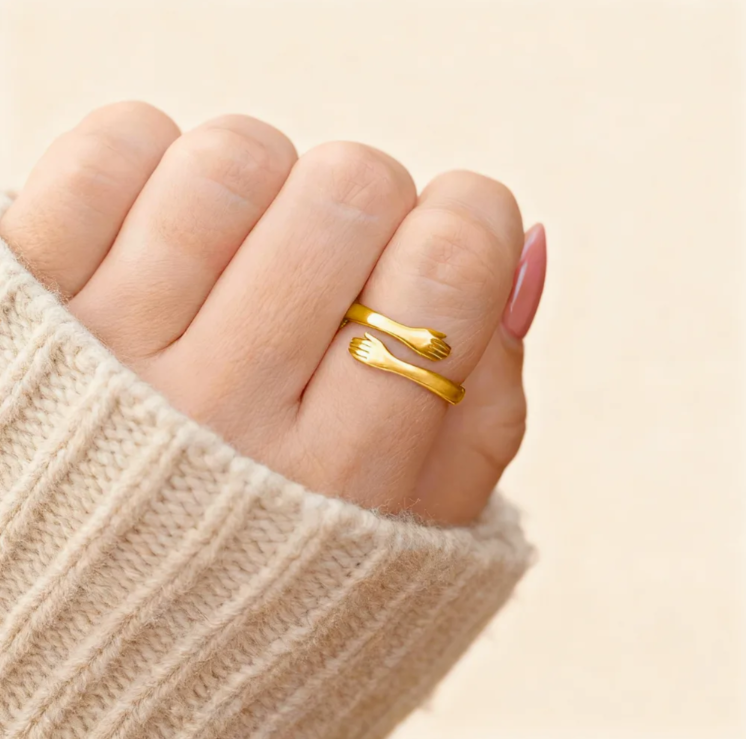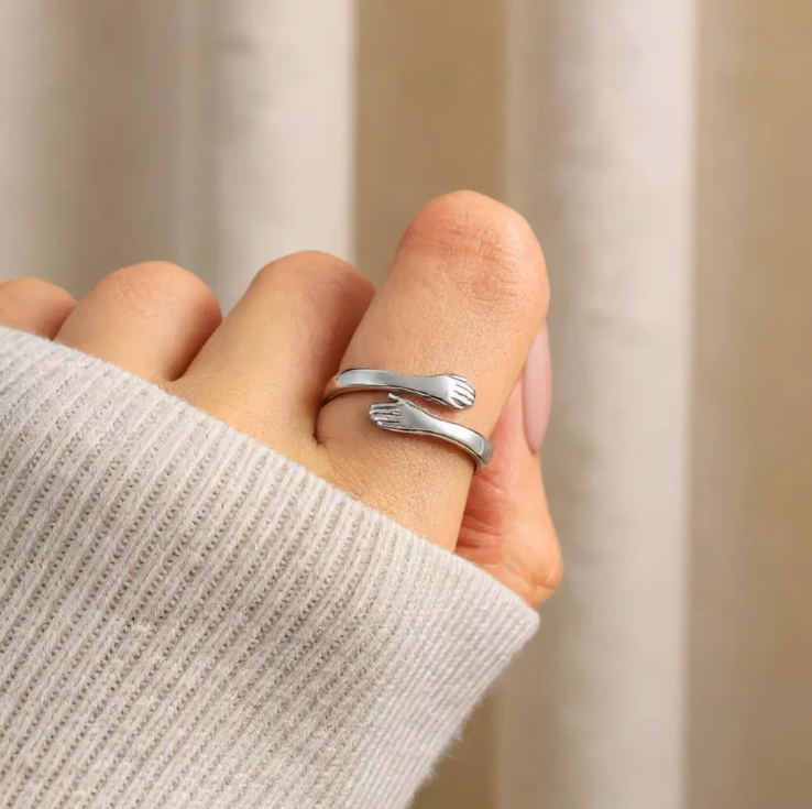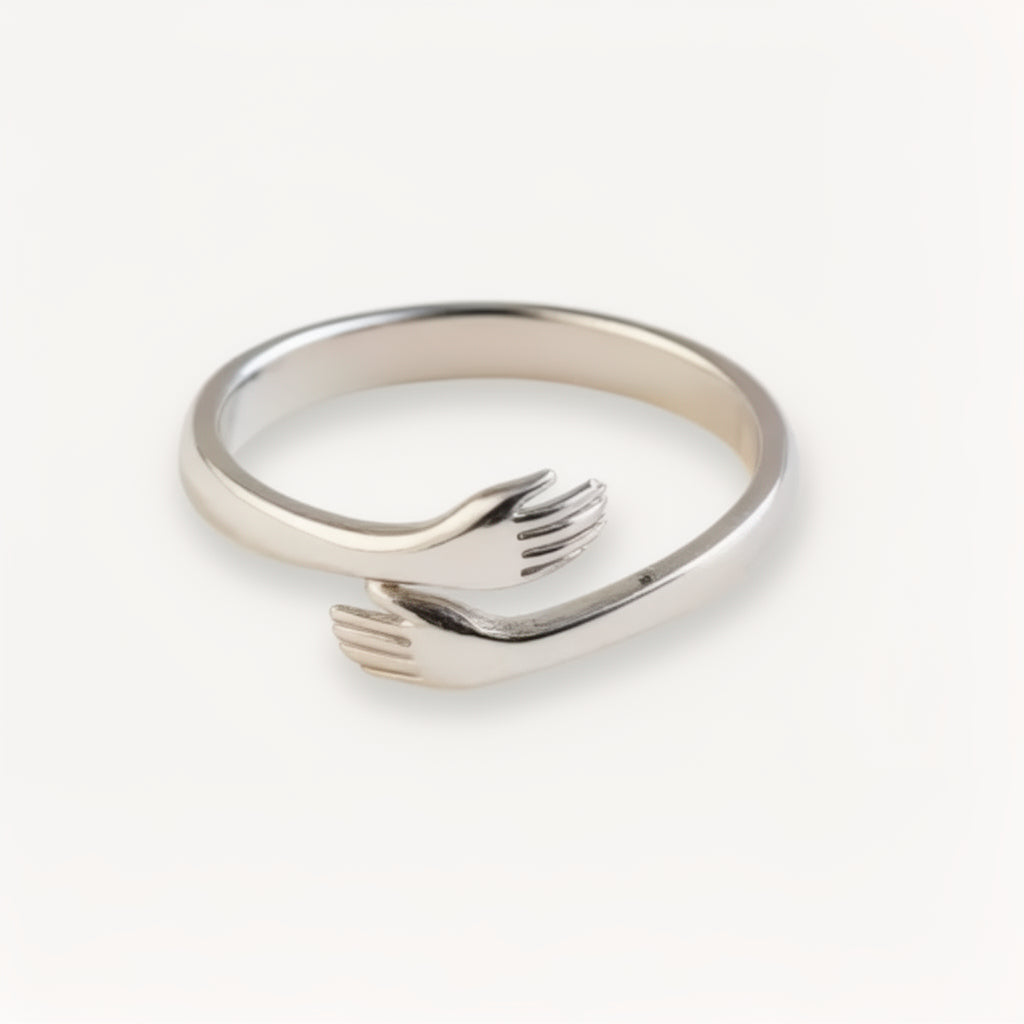 Cette bague représente une étreinte qui ne se lâche jamais, un geste silencieux qui dit : “je suis avec toi, toujours”.